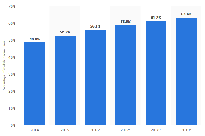 Les applications mobiles prennent de plus en plus de place dans la vie de tous les jours. D’après les données fournies par Statista , en 2015, 52,7% de la population mondiale a accédé à Internet à partir de leur téléphone mobile. Ce chiffre a atteint 61,2% en 2018. En février 2017, les appareils mobiles autres que les tablettes représentaient 49,73% des pages Web consultées dans le monde.